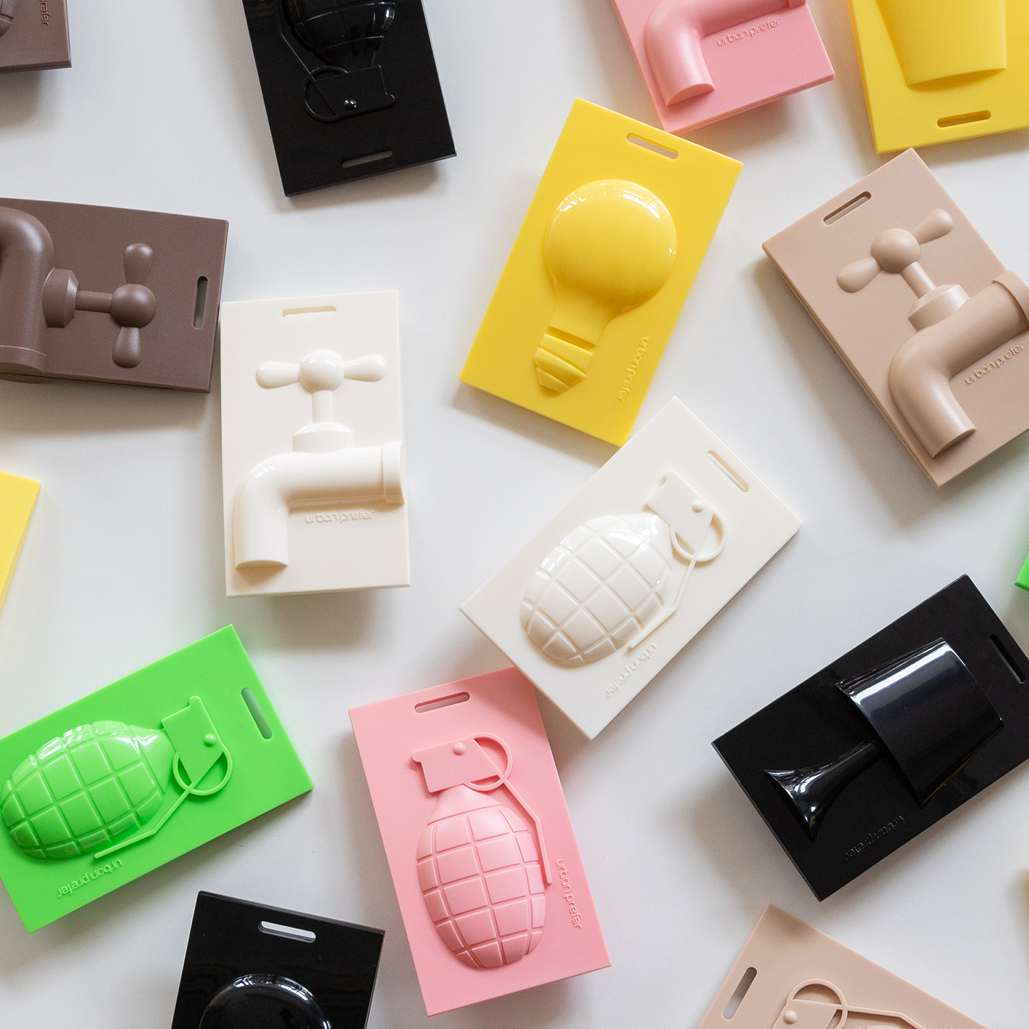 無駄なエネルギー(水や電気など)を節約しよう、というメッセージが込められたデザイン。カラビナが付いた専用チャーム付きでバッグなどにも取り付けできます。