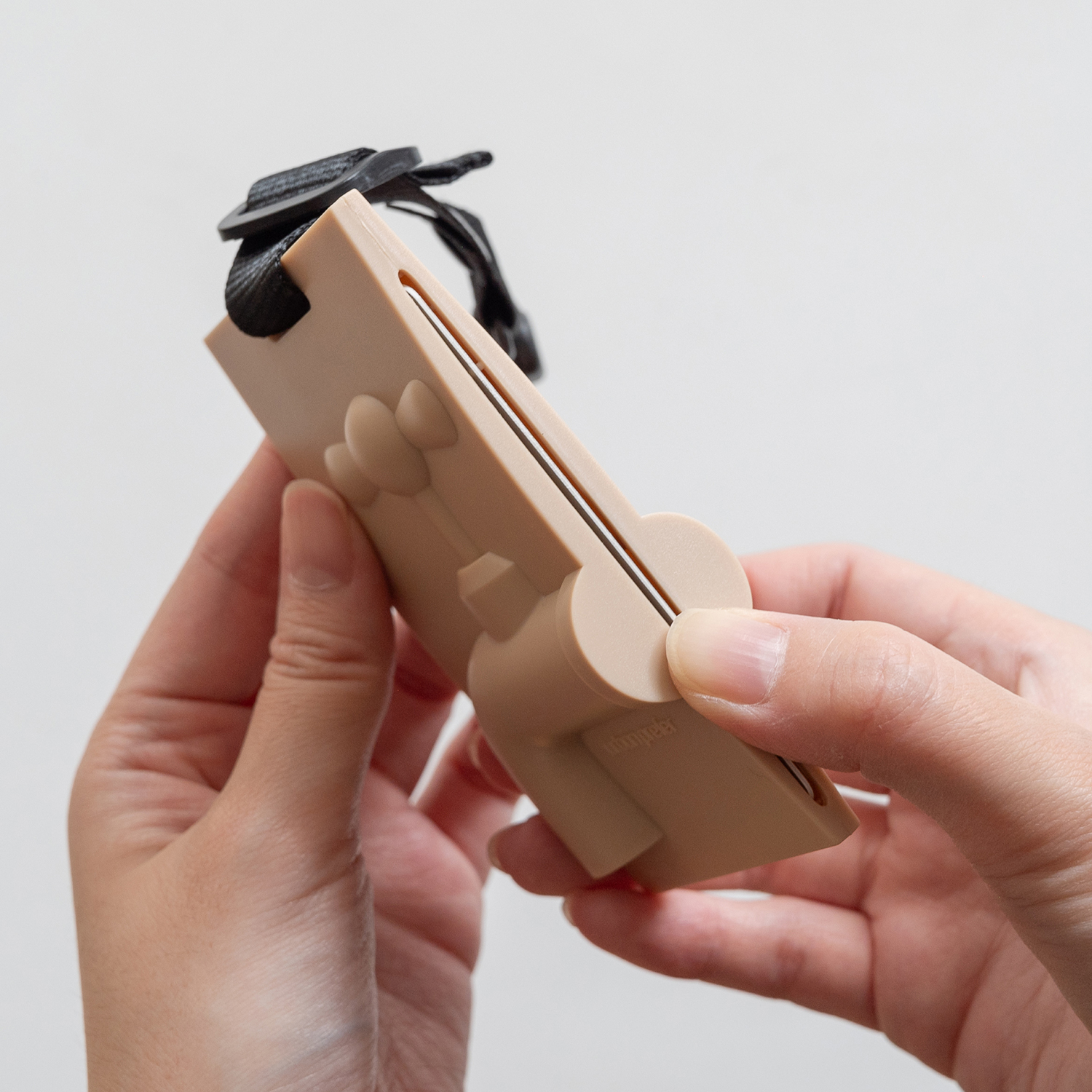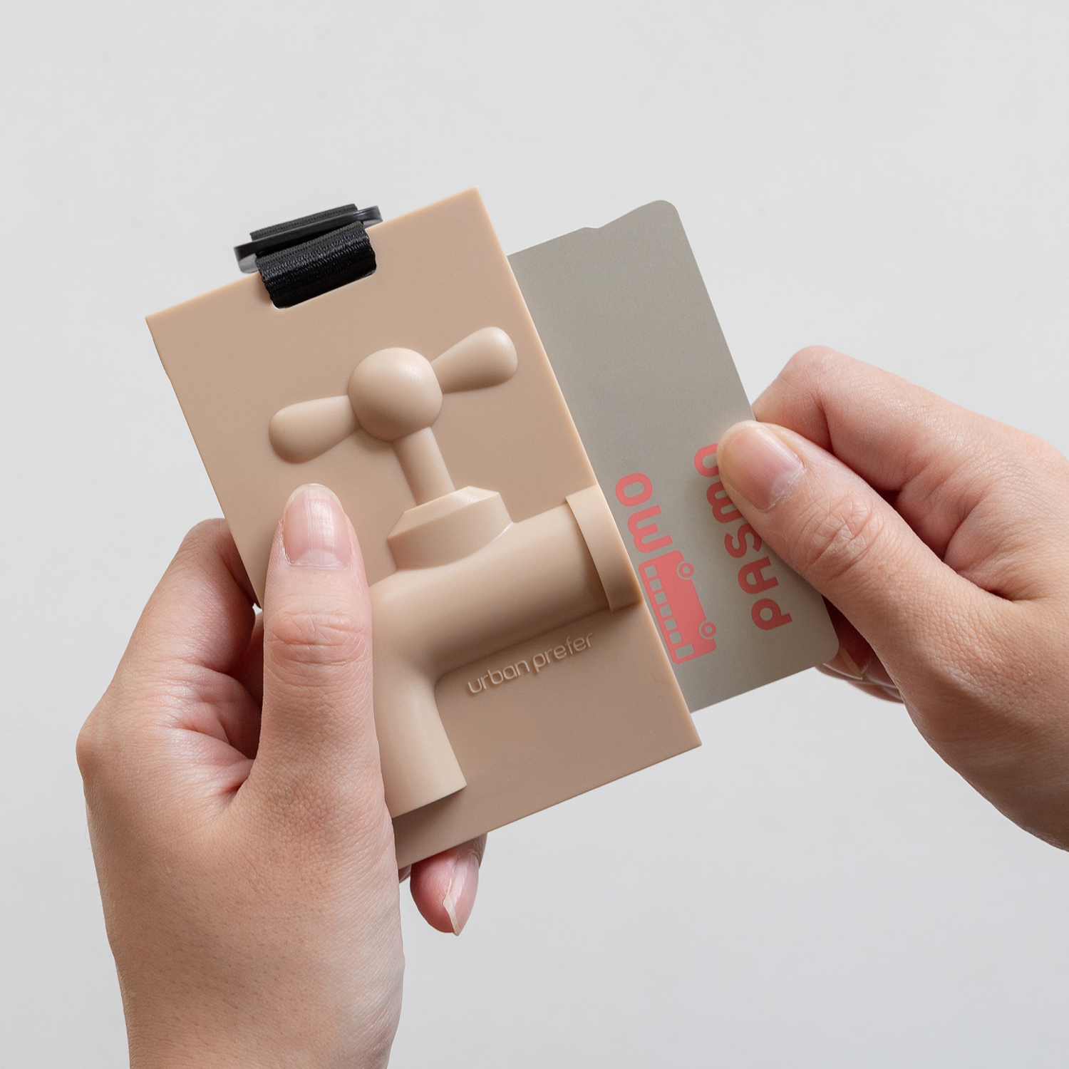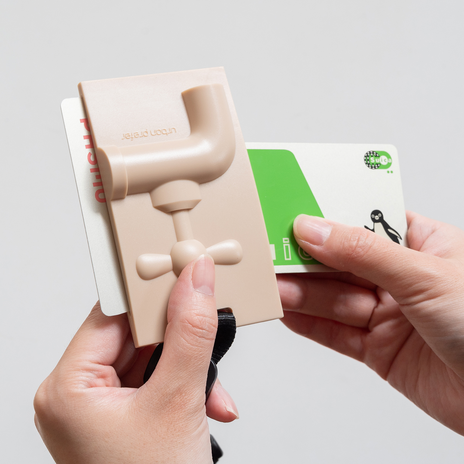 ICカードを側面からスライドさせて使うカードホルダー。しっかりホールドされるのでなくす心配もありません。